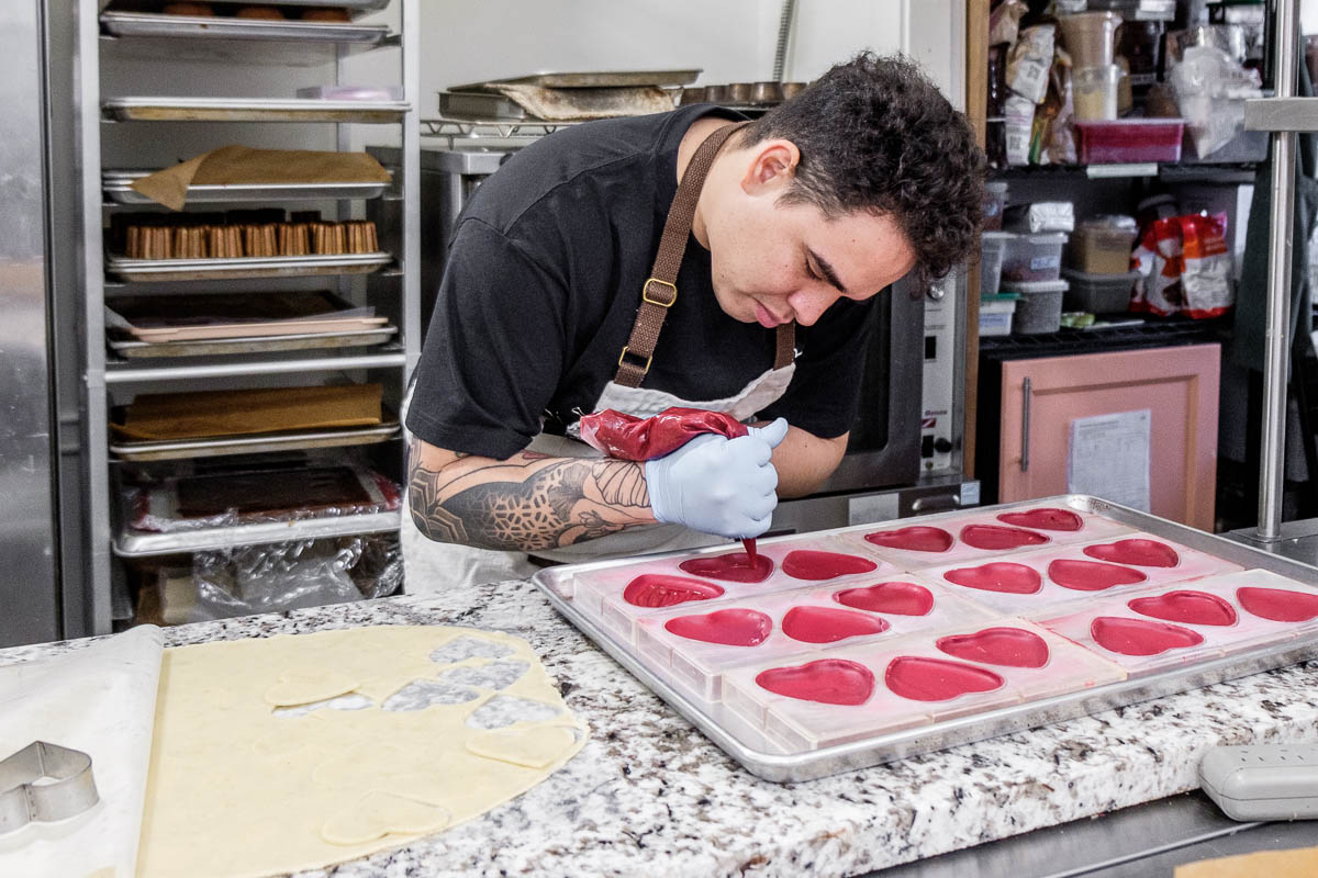 Toña barista Cosette Bote (L) and owner/pastry chef Daniel Muñoz prepare for Valentine’s Day .